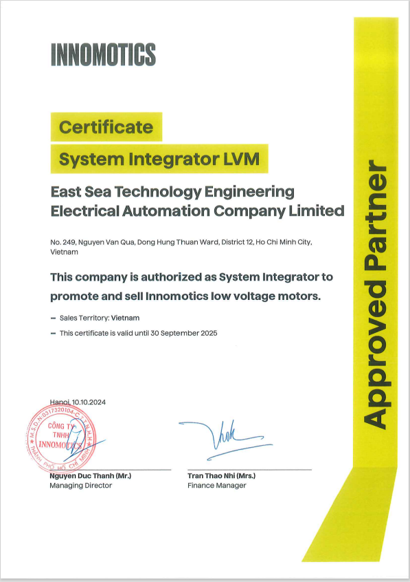 CHỨNG NHẬN ĐỐI TÁC CỦA INNIMOTICS 2025
