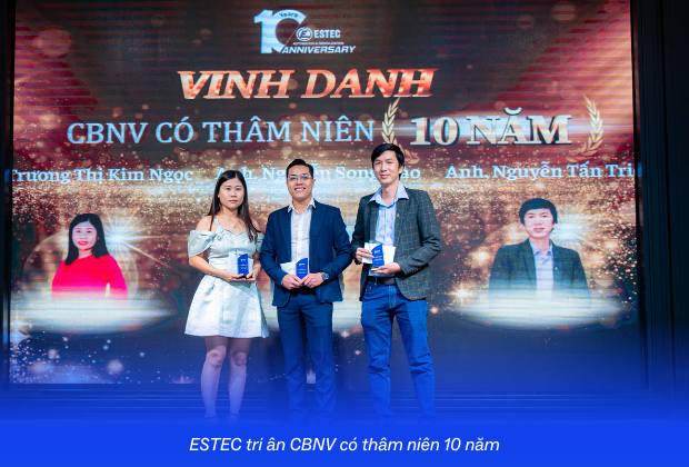 Những khoảnh khắc vinh danh và tri ân tại sự kiện đã tỏa sáng tinh thần đồng đội, sự cống hiến không ngừng nghỉ, cùng những thành tích xuất sắc của các tập thể và cá nhân đã đạt được trong năm 2024. Đặc biệt, ESTEC trân trọng ghi nhận và vinh danh những cán bộ nhân viên gắn bó thâm niên 10 năm – những người đã đồng hành và cống hiến từ những ngày đầu xây dựng nền móng vững chắc cho thành công hôm nay.